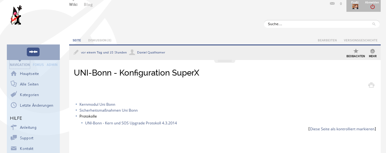 Die Memtext Wissensplatform: Neben der Abrechnung im Supportkonto werden zentrale Dokumentationen, Vermerke, Konfigurationen und hochschulspezifische Scripte in der Memtext Wissensplatform abgelegt. Die Mitarbeiter/innen erhalten einen Account und können die Materialien jederzeit online einsehen. Über die Wiki-Funktion ist sogar gemeinsames Arbeiten möglich. Hier ein Screenshot: